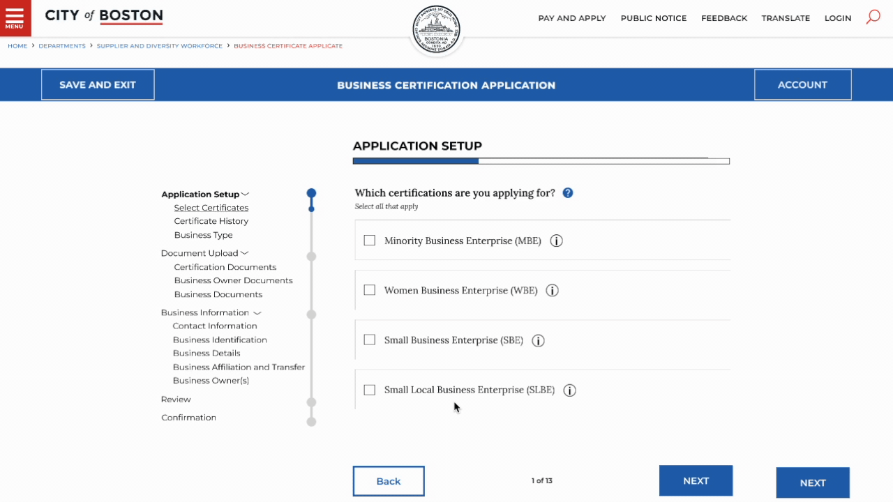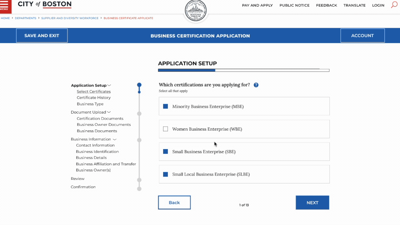 Complete Main Application: Now that you know what you qualify for, finish the application for the certifications you qualified for. Assume you have all of your documents prepared and ready to upload.