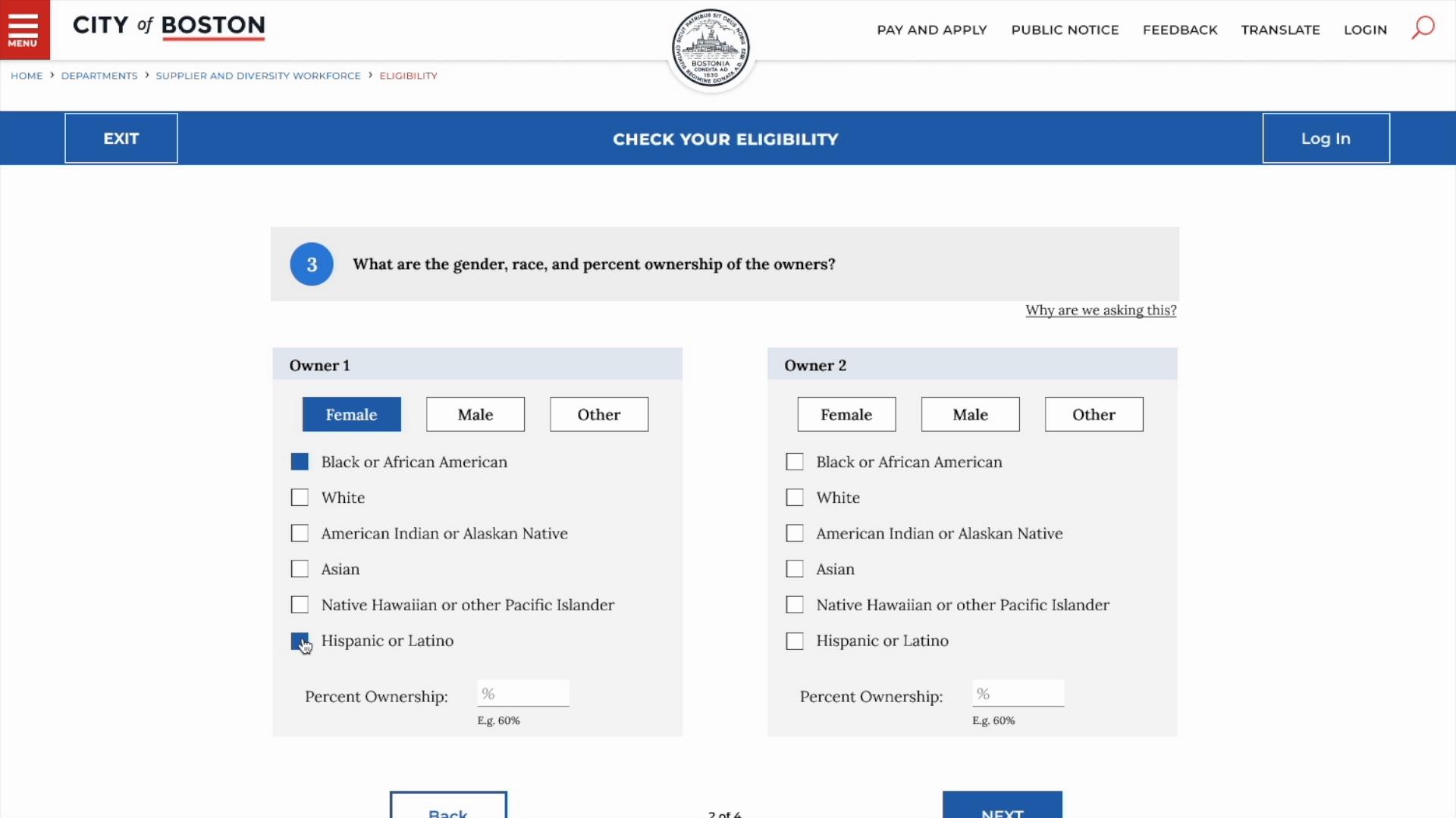 Eligibility Screening: You are a Hispanic male who owns an LLC in Boston with another Asian owner that earns an estimated annual revenue of $150,000. You would like to find out what certification you qualify for before you apply.